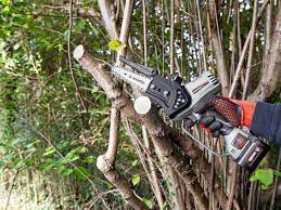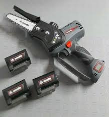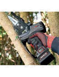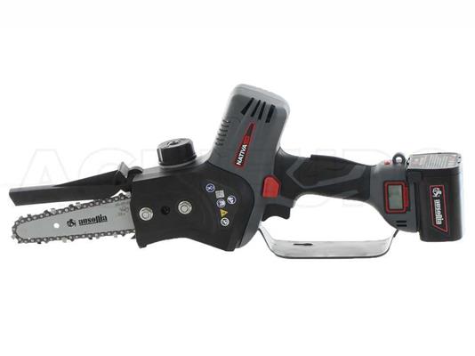 Versatile potatore a batteria per la potatura di piccoli alberi e cespugli, per ridurre a piccoli pezzi il materiale tagliato e per lavori di carpenteria.