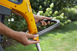 - Passa dal taglio dell'erba alla rifinitura dei bordi con un solo click; l'archetto distanziatore pieghevole permette di tagliare in modo preciso attorno agli oggetti