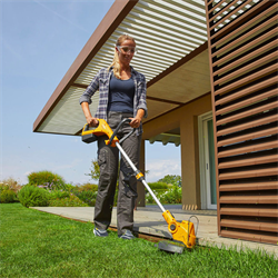 Il tagliabordi elettrico a batteria GT 100e Kit rende piacevole qualsiasi lavoro di rifinitura e bordatura del tuo giardino. Questo modello è dotato di un potente motore, di una batteria da 20 V e 2 Ah perfettamente bilanciata e di impugnatura ergonomica morbida, per affrontare le erbacce con la massima facilità. Il filo di nylon autoalimentante permette di compiere le operazioni di rifinitura in modo affidabile e continuativo, mentre l’impugnatura singola regolabile ne garantisce la maneggevolezza senza affaticare le braccia. E per garantirti un comfort totale, l’asta telescopica del tuo GT 100e Kit (with battery 2,0 Ah)è regolabile in altezza. L’GT 100e Kit (with battery 2,0 Ah) è inoltre facile da usare. Potrai infatti passare dalla modalità rifinitura al taglio dei bordi con un solo click; grazie alla funzione tagliabordi la testina ruota lateralmente di 90° per consentirti di rifinire al meglio il tuo prato, i bordi e i vialetti. Inoltre, la testina rotante (fino a 45°) offre rifiniture perfette, con un archetto distanziatore che permette di tagliare in modo preciso intorno alle piante e ad altri ostacoli.