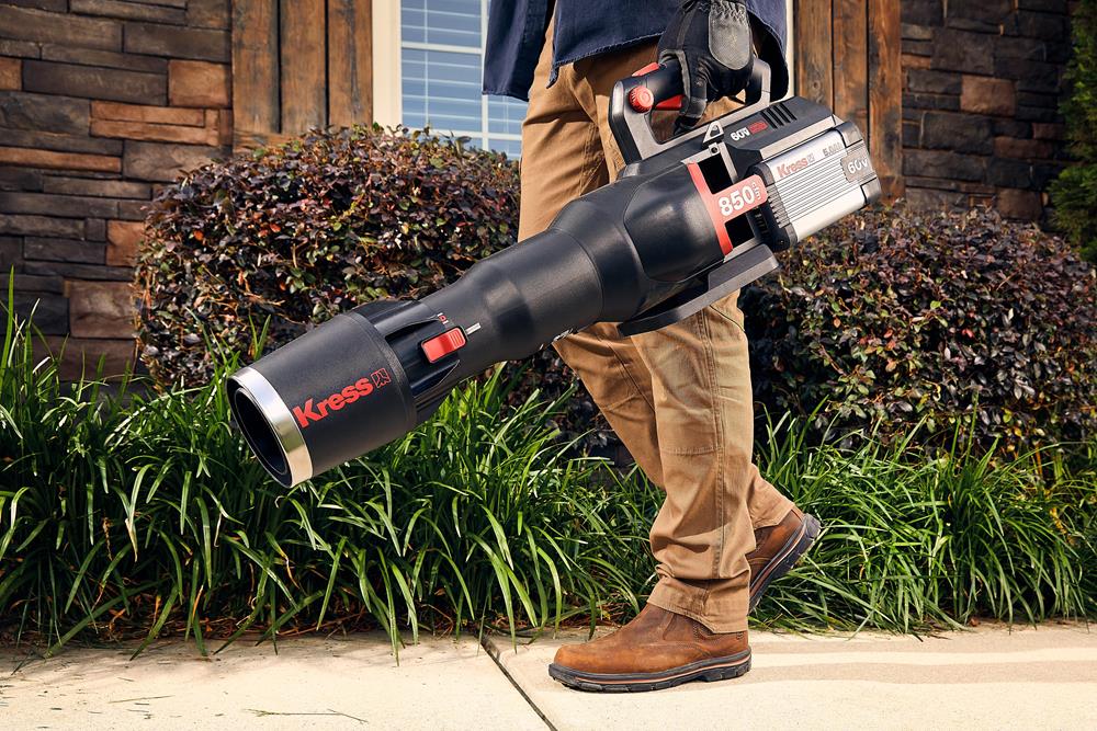 Il soffiatore da 60 V KG560E.9 genera una spinta potente che sposta facilmente anche le foglie bagnate e pesanti, a zero emissioni e a costi contenuti.