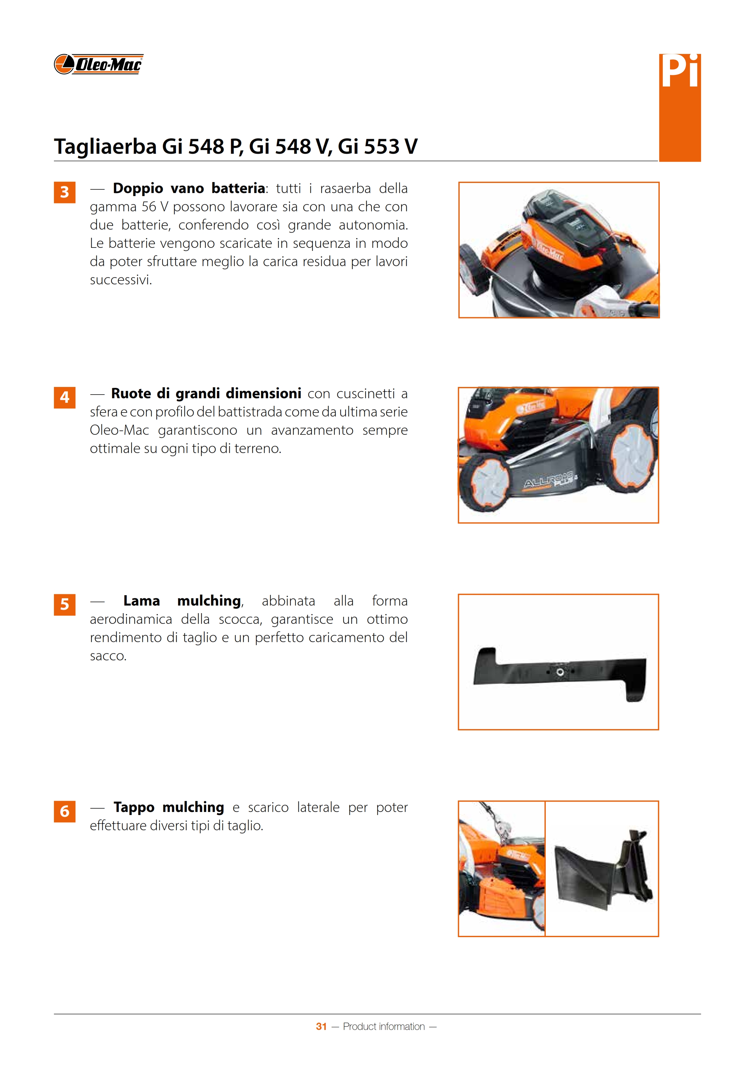 Mulching/Scarico laterale di serie/di serie